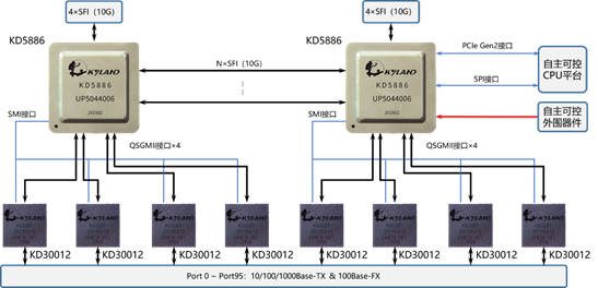 應用2:KD5886雙片堆疊方案(96端口)