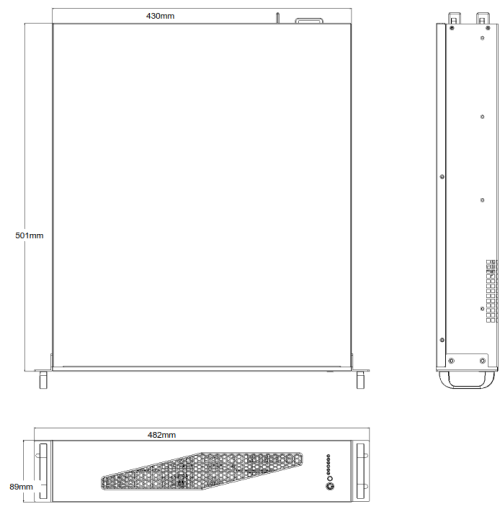 | 機械結(jié)構(gòu) | 外殼:金屬 重量:12kg 尺寸(WxHxD):430mm×90mm×500mm 安裝方式:2U機架安裝 |