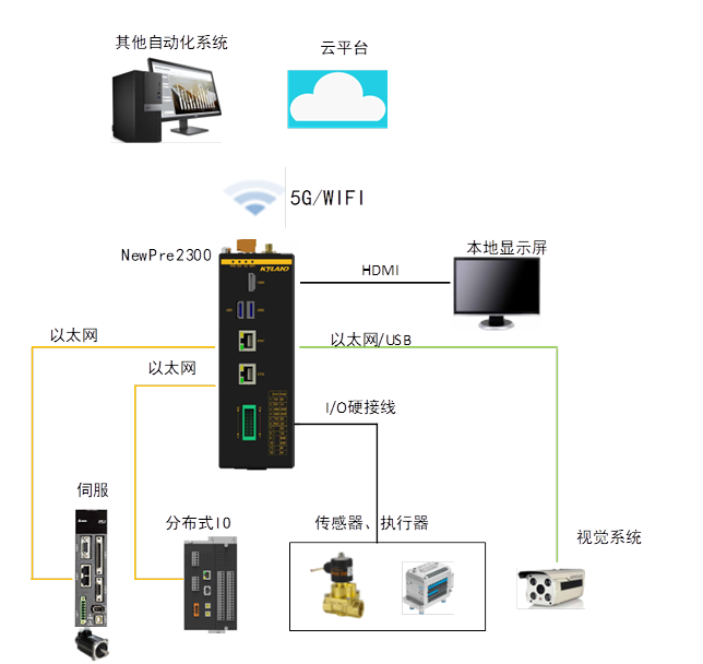 NewPre2300內置IEC61131-3實時控制內核及協(xié)議網關軟件,并提供圖形桌面系統(tǒng),可集成如視頻編解碼、邊緣小型數據庫等多種業(yè)務軟件,成為工業(yè)現場一站式邊緣節(jié)點。