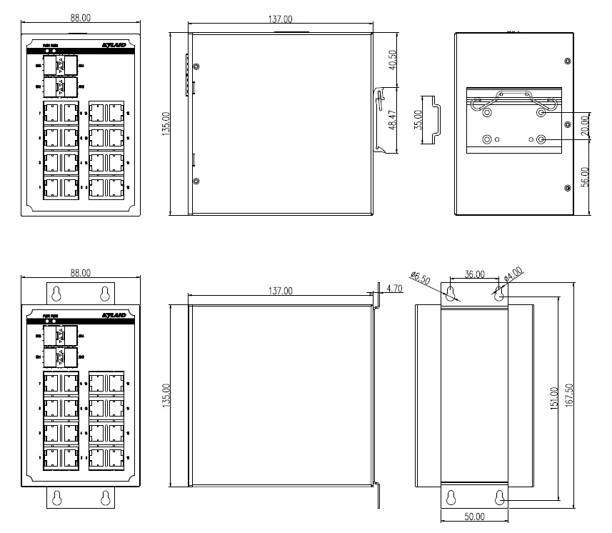 | 機(jī)械結(jié)構(gòu) | 外殼 金屬材質(zhì) 散熱方式 自然冷卻,無(wú)風(fēng)扇 防護(hù)等級(jí) IP40 尺寸88mm×135mm×137mm (W×H×D) 重量 1.25Kg 安裝方式 DIN卡軌式或壁掛式 |