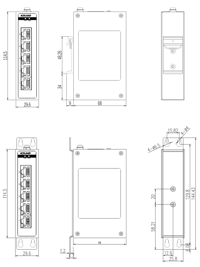 | 機械結(jié)構(gòu) | 外殼 金屬材質(zhì) 散熱方式 自然冷卻,無風扇 防護等級 IP30 尺寸 29.6mm×114.5mm×68mm (W×H×D) 重量 0.2Kg 安裝方式 DIN卡軌式或壁掛式 |