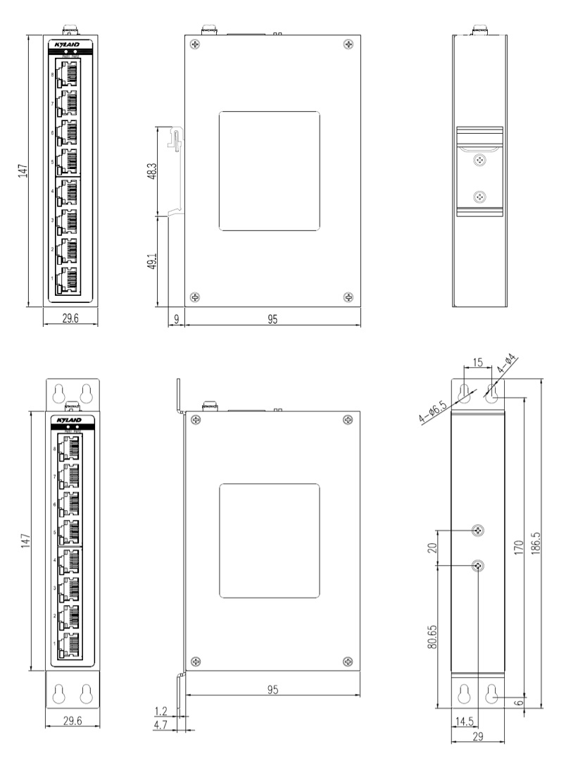 | 機械結(jié)構(gòu) | 外殼 金屬材質(zhì) 散熱方式 自然冷卻,無風(fēng)扇 防護等級 IP30 尺寸 29.6mm×147mm×95mm (W×H×D) 重量 0.3Kg 安裝方式 DIN卡軌式或壁掛式 |