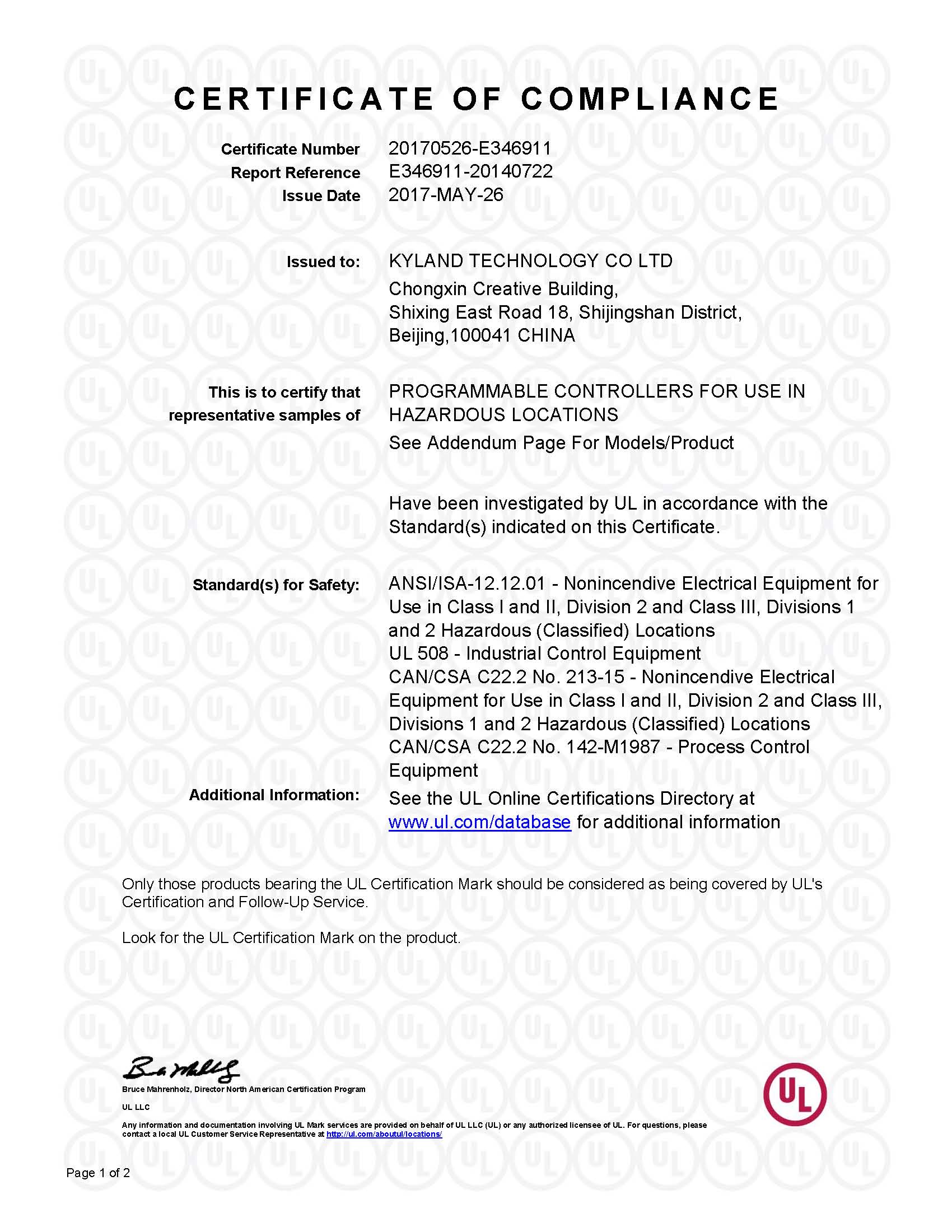 UL61010 Certification_E314265_OPAL5,OPAL8,OPAL20_24VDC(24VAC)
