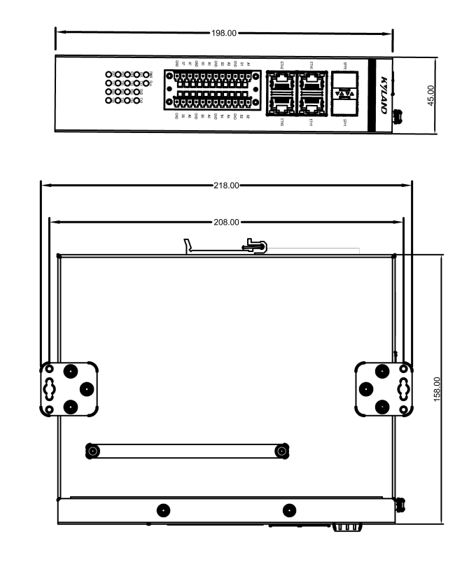 機(jī)械結(jié)構(gòu) | 外殼:金屬材質(zhì) 尺寸:45×208×158mm(W×H×D) 包裝尺寸:250×200×100mm 散熱方式:自然冷卻,無風(fēng)扇 防護(hù)等級:IP40 安裝方式:壁掛,導(dǎo)軌 |