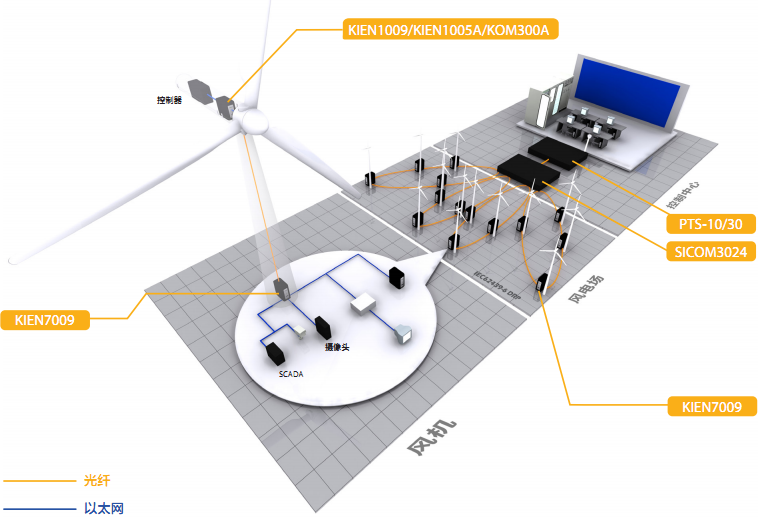· 光口方案提供至風塔頂部以及冗余環(huán)網(wǎng)的光纖連接