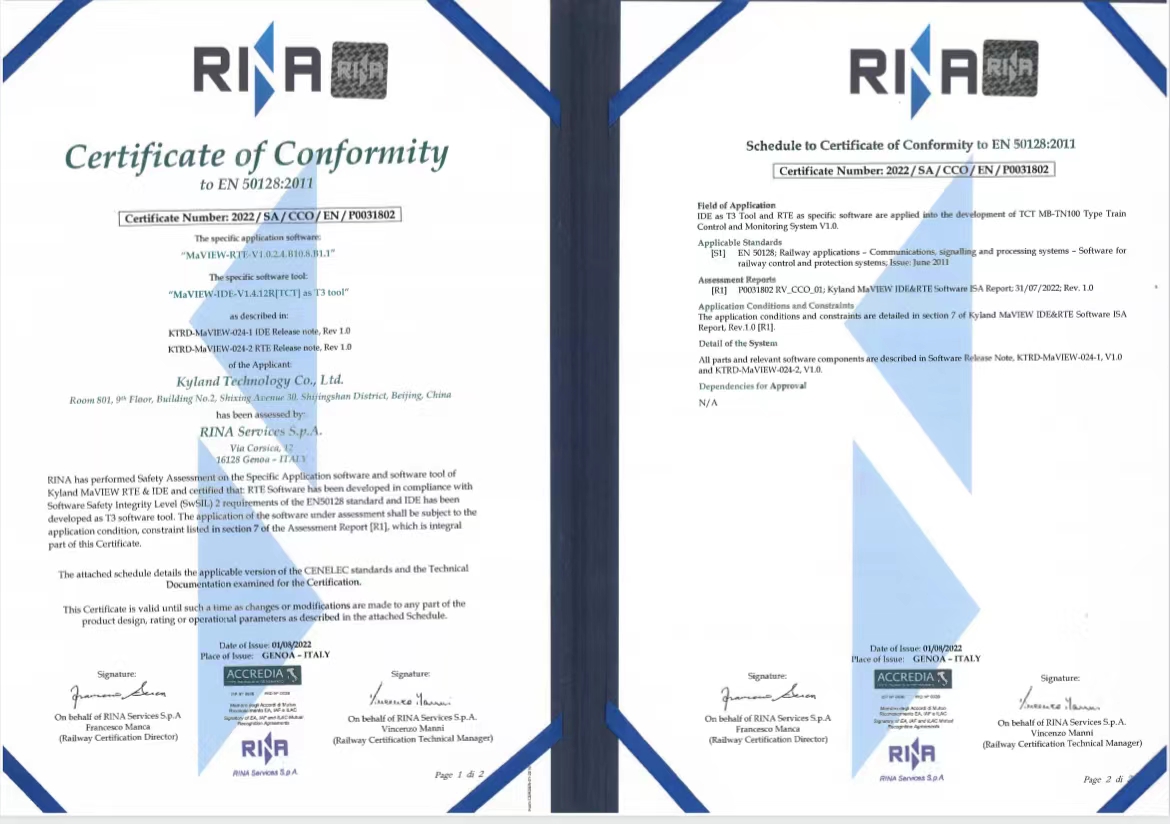 RINA Service S.p.A 于1861年成立,是意大利、瑞士、希臘 NSA(國(guó)家安全管理局)授權(quán)的獨(dú)立安全評(píng)估機(jī)構(gòu),是經(jīng)認(rèn)證認(rèn)可機(jī)構(gòu) ACCREDIA 授權(quán)的鐵路系統(tǒng)產(chǎn)品認(rèn)證機(jī)構(gòu)。SIL認(rèn)證基于IEC61508(GB/T20438),IEC61511(GB/T 21109)等標(biāo)準(zhǔn),對(duì)安全設(shè)備的安全完整性等級(jí)(SIL)或者性能等級(jí)(PL)進(jìn)行評(píng)估和確認(rèn)的一種第三方評(píng)估、驗(yàn)證和認(rèn)證。功能安全認(rèn)證主要涉及針對(duì)安全設(shè)備開(kāi)發(fā)流程的文檔管理(FSM)評(píng)估,硬件可靠性計(jì)算和評(píng)估軟件評(píng)估、環(huán)境試驗(yàn)、EMC電磁兼容性測(cè)試等內(nèi)容。