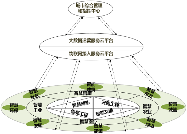 通過(guò)云數(shù)據(jù)中心構(gòu)建智慧城市360全景數(shù)據(jù),打造數(shù)據(jù)共融共享平臺(tái),通過(guò)智慧城市操作系統(tǒng)提供統(tǒng)一的服務(wù)和應(yīng)用支撐。