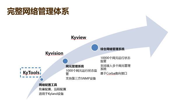 此外,東土科技還擁有完整的網(wǎng)絡(luò)管理體系,包括網(wǎng)絡(luò)配置工具Ky-Tools、網(wǎng)元管理系統(tǒng)Ky-vision、綜合網(wǎng)絡(luò)管理系統(tǒng)Ky-view。