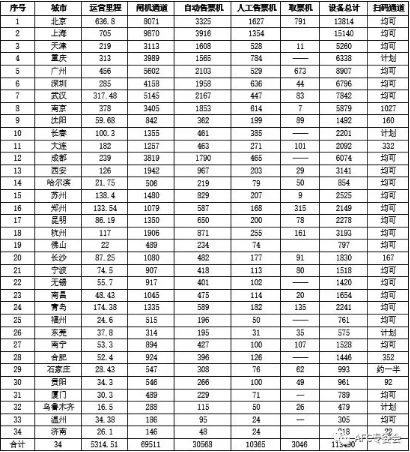 一、軌道交通AFC設(shè)備應(yīng)用情況統(tǒng)計(jì):