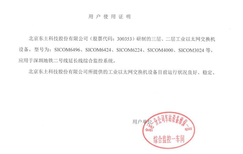 在運(yùn)營(yíng)近10年的深圳地鐵2號(hào)線中,東土科技提供60多臺(tái)三層工業(yè)以太網(wǎng)交換機(jī),以其強(qiáng)大的環(huán)境適應(yīng)能力穩(wěn)定支持地鐵綜合監(jiān)控系統(tǒng)無(wú)間斷運(yùn)行。