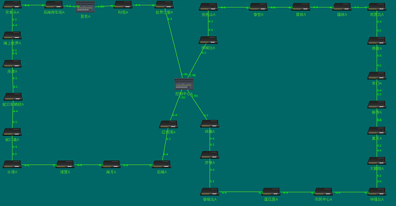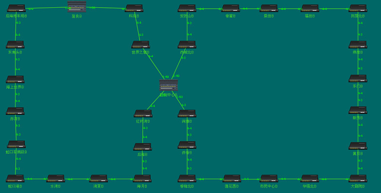 2號(hào)線運(yùn)營(yíng)中的線路全線設(shè)有29座車(chē)站、1個(gè)控制中心、1個(gè)車(chē)輛段,1個(gè)停車(chē)場(chǎng)和2個(gè)主變電所。整體監(jiān)控系統(tǒng)分為中央級(jí)和車(chē)站級(jí),中央級(jí)(控制中心)采用東土科技SICOM6496萬(wàn)兆級(jí)三層路由工業(yè)以太網(wǎng)交換機(jī),車(chē)站級(jí)(含29座車(chē)站、1處車(chē)輛段、1處停車(chē)場(chǎng))采用SICOM6424SM千兆三層路由工業(yè)以太網(wǎng)交換機(jī)。這些設(shè)備在各個(gè)網(wǎng)絡(luò)節(jié)點(diǎn)均以?xún)膳_(tái)結(jié)構(gòu)分別接入通信光纖,組雙冗余環(huán)網(wǎng)(A網(wǎng)和B網(wǎng)),實(shí)現(xiàn)互為冗余的無(wú)擾動(dòng)切換。