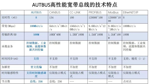東土科技AUTBUS擁有傳統(tǒng)工業(yè)現(xiàn)場(chǎng)總線兩線制傳輸、安裝簡(jiǎn)單的優(yōu)點(diǎn),具有媲美實(shí)時(shí)以太網(wǎng)高達(dá)100Mbps的帶寬,解決了傳統(tǒng)工業(yè)現(xiàn)場(chǎng)總線帶寬低、實(shí)時(shí)性不足的問題。它能在確保100Mbps帶寬的前提下,最遠(yuǎn)傳輸距離達(dá)500米,而不需要像實(shí)時(shí)以太網(wǎng)部署交換機(jī)等設(shè)備導(dǎo)致的復(fù)雜拓?fù)渚W(wǎng)絡(luò)。AUTBUS標(biāo)準(zhǔn)是一個(gè)定義了物理層、數(shù)據(jù)鏈路層和應(yīng)用層的完整協(xié)議棧標(biāo)準(zhǔn),通過適配處理,在數(shù)據(jù)鏈路層它可兼容現(xiàn)有的基于以太網(wǎng)IPV4和IPV6應(yīng)用業(yè)務(wù)。它真正實(shí)現(xiàn)了工業(yè)控制總線網(wǎng)絡(luò)的統(tǒng)一,推動(dòng)全球智能制造一體化建設(shè)的發(fā)展。