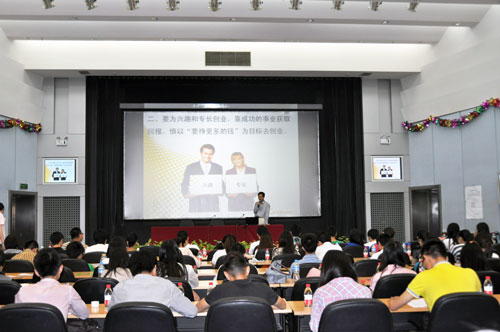 講座上,李總結(jié)合自身的創(chuàng)業(yè)經(jīng)歷,分享了自主創(chuàng)業(yè)過程中的感悟,建議創(chuàng)業(yè)者要從創(chuàng)業(yè)動機(jī)、創(chuàng)業(yè)領(lǐng)域選擇、創(chuàng)業(yè)計劃、風(fēng)險控制、團(tuán)隊意識和創(chuàng)業(yè)心態(tài)等方面進(jìn)行充分地準(zhǔn)備,強調(diào)了創(chuàng)業(yè)者應(yīng)具備的基本素質(zhì),為同學(xué)們的創(chuàng)業(yè)之路提供了指導(dǎo)性意見。隨后,李總就學(xué)生關(guān)心的話題進(jìn)行了互動,深入解答學(xué)生提出的創(chuàng)業(yè)問題,并高度贊揚了學(xué)生們的創(chuàng)業(yè)激情和創(chuàng)業(yè)夢想。精彩的講座,深入的分享,受到了學(xué)生的熱烈歡迎,講座持續(xù)1個半小時,結(jié)束時同學(xué)們?nèi)愿幸猹q未盡,紛紛與李總進(jìn)行場下交流和咨詢。