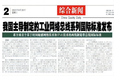 中國(guó)工業(yè)報(bào)&中國(guó)質(zhì)量報(bào)報(bào)道:全I(xiàn)P化工業(yè)網(wǎng)絡(luò)總線開啟工業(yè)網(wǎng)絡(luò)新時(shí)代