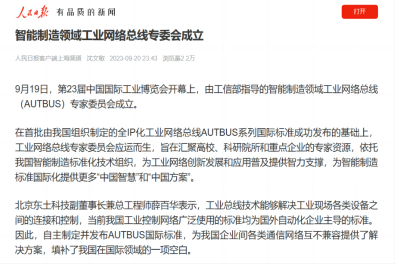 人民日?qǐng)?bào)&人民網(wǎng)報(bào)道:智能制造領(lǐng)域工業(yè)網(wǎng)絡(luò)總線專委會(huì)成立
