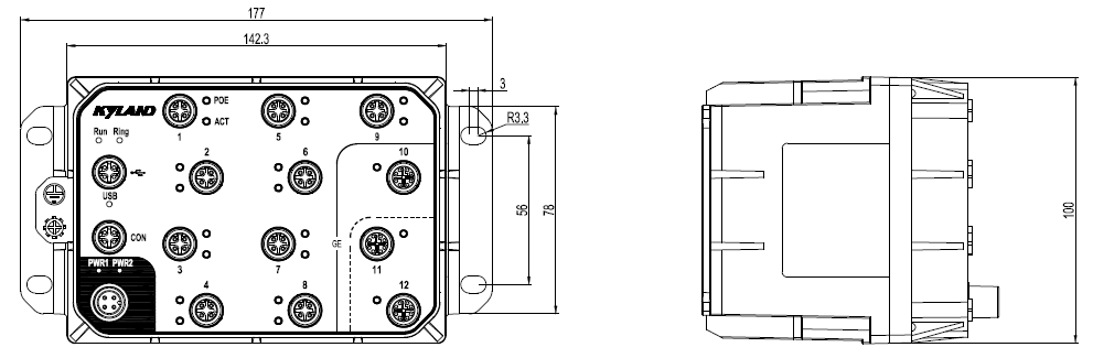 機械機構(gòu) | 外殼 Metal 散熱方式 自然冷卻, 無風(fēng)扇 防護等級 IP65 尺寸 100mm×142.3mm×111.7mm(H×W×D) 重量 3.5Kg 安裝方式 壁掛式 |