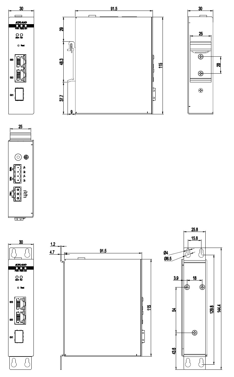 機(jī)械結(jié)構(gòu) | 外殼 金屬材質(zhì) 散熱方式 自然冷卻,無(wú)風(fēng)扇 防護(hù)等級(jí) IP40 尺寸 30mm×115mm×91.5mm(W×H×D) 重量 0.36kg 安裝方式 DIN卡軌式或壁掛式 |