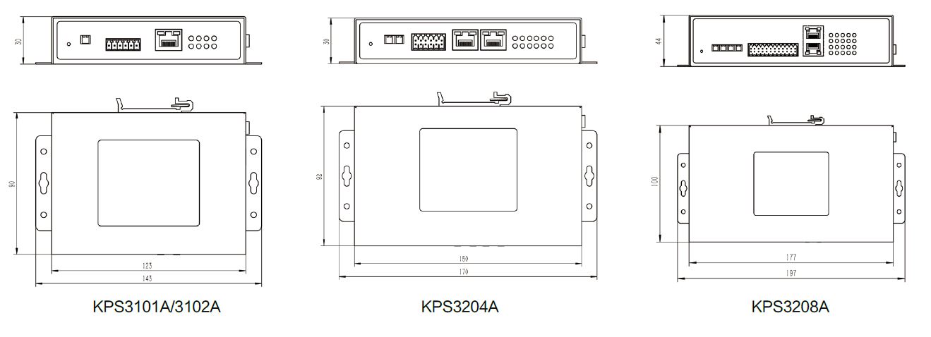 物理特性 | 外殼 金屬 尺寸(WxHxD) KPS3101A:30mmx123mmx90mm KPS3102A:30mmx123mmx90mm KPS3204A:30mmx150mmx92mm KPS3208A:44mmx177mmx100mm 包裝尺寸:250mmx200mmx70mm |