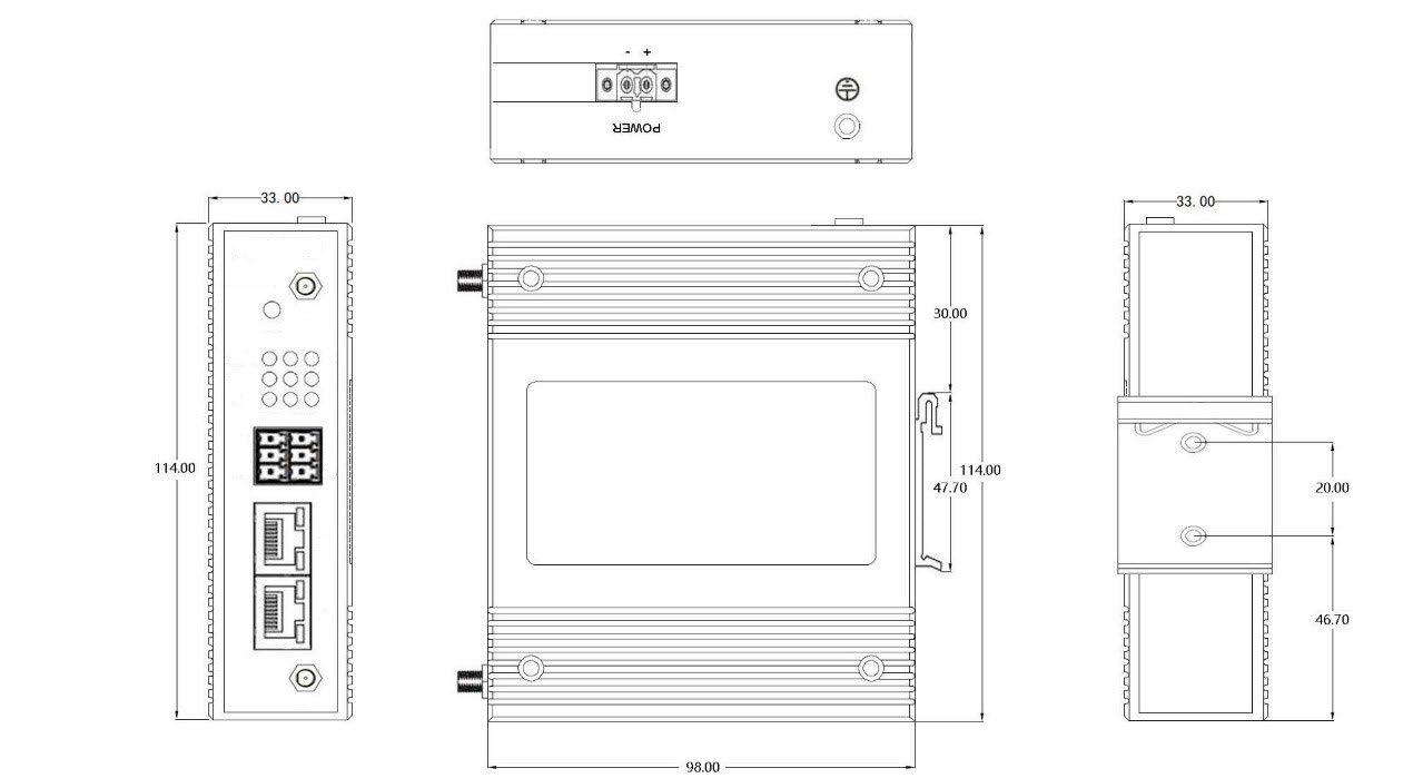 2×10/100/1000Base-T(X) RJ45電口 | 1×RS-232/485 | 12~36VDC |