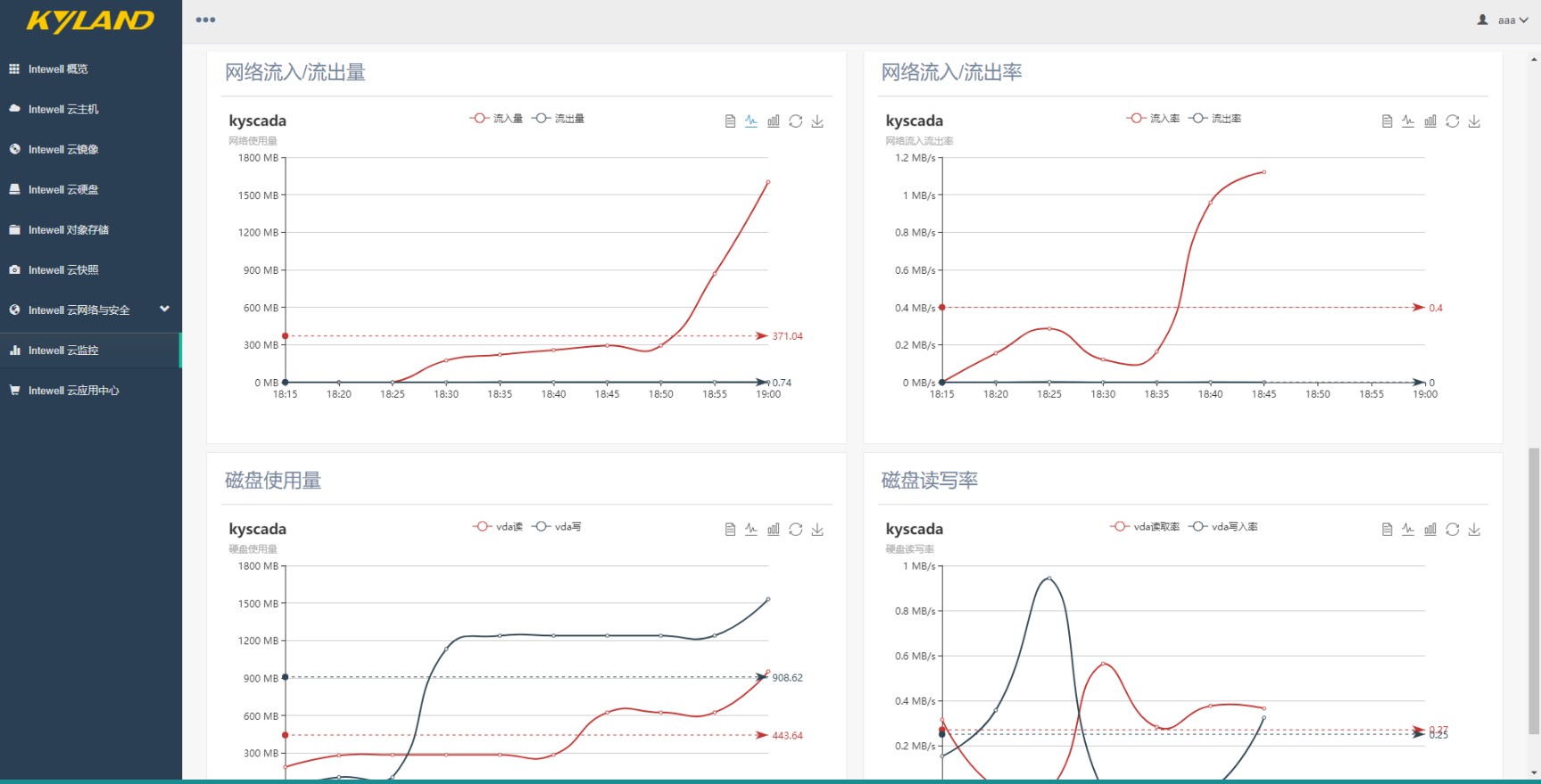 云監(jiān)控管理 | 支持對云主機CPU、內(nèi)存、磁盤、網(wǎng)絡(luò)的監(jiān)控。 支持對應(yīng)用資源的監(jiān)控及動態(tài)擴展 支持對應(yīng)用特有的業(yè)務(wù)進行監(jiān)控(應(yīng)用自定義) 支持對應(yīng)用的編排:單個應(yīng)用啟、停和多個應(yīng)用的編排 ![]() ![]() |
