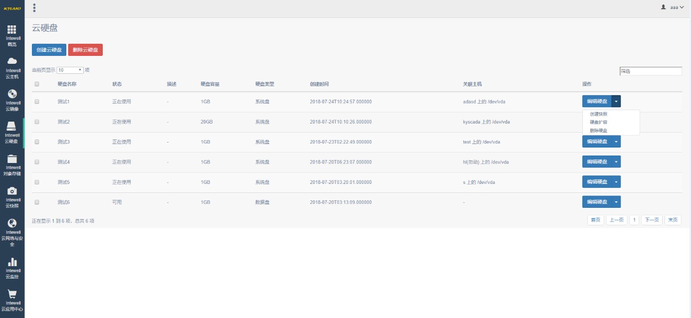 云鏡像 | 支持創(chuàng)建、刪除云鏡像 支持基于鏡像創(chuàng)建云主機、云硬盤 自帶操作系統(tǒng)的云鏡像:ubuntu 14.04 server、ubuntu 16.04 server、centos 6.6 server 、centos 7.4 server版 ![]() |