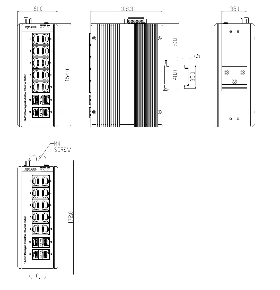 機械結(jié)構(gòu) | 外殼 金屬材質(zhì) 散熱方式 自然冷卻,無風(fēng)扇 防護等級 IP30 尺寸 108mmx154mmx61mm(W×H×D) 重量 1.4Kg 安裝方式 DIN卡軌式或壁掛式 |