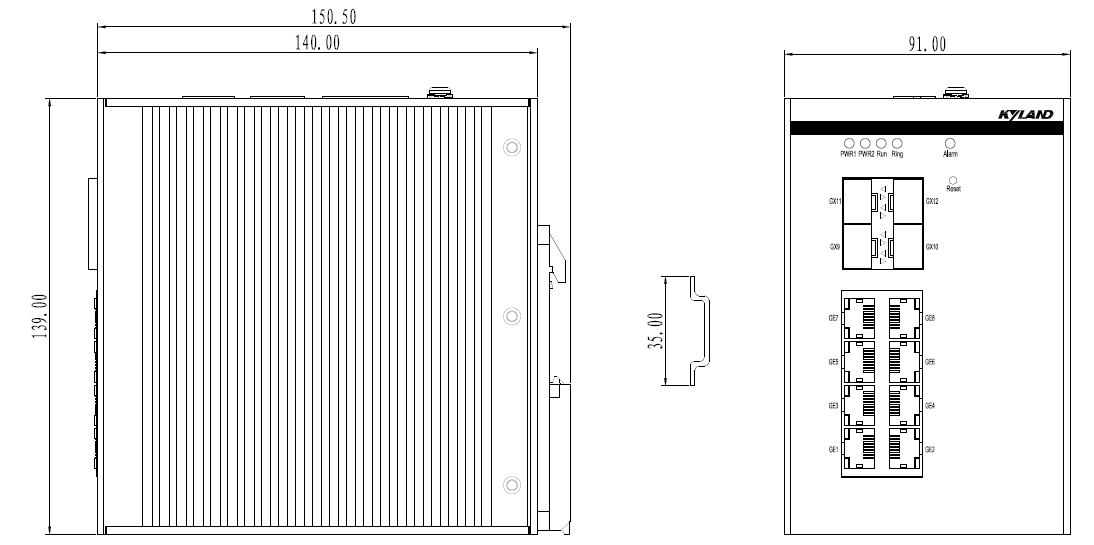 機械結(jié)構(gòu) | 外殼 金屬材質(zhì) 散熱方式 自然冷卻,無風(fēng)扇 防護(hù)等級 IP40 尺寸 91mm×139mm×140mm (W×H×D) 重量 1.50Kg 安裝方式 DIN卡軌式或壁掛式 |